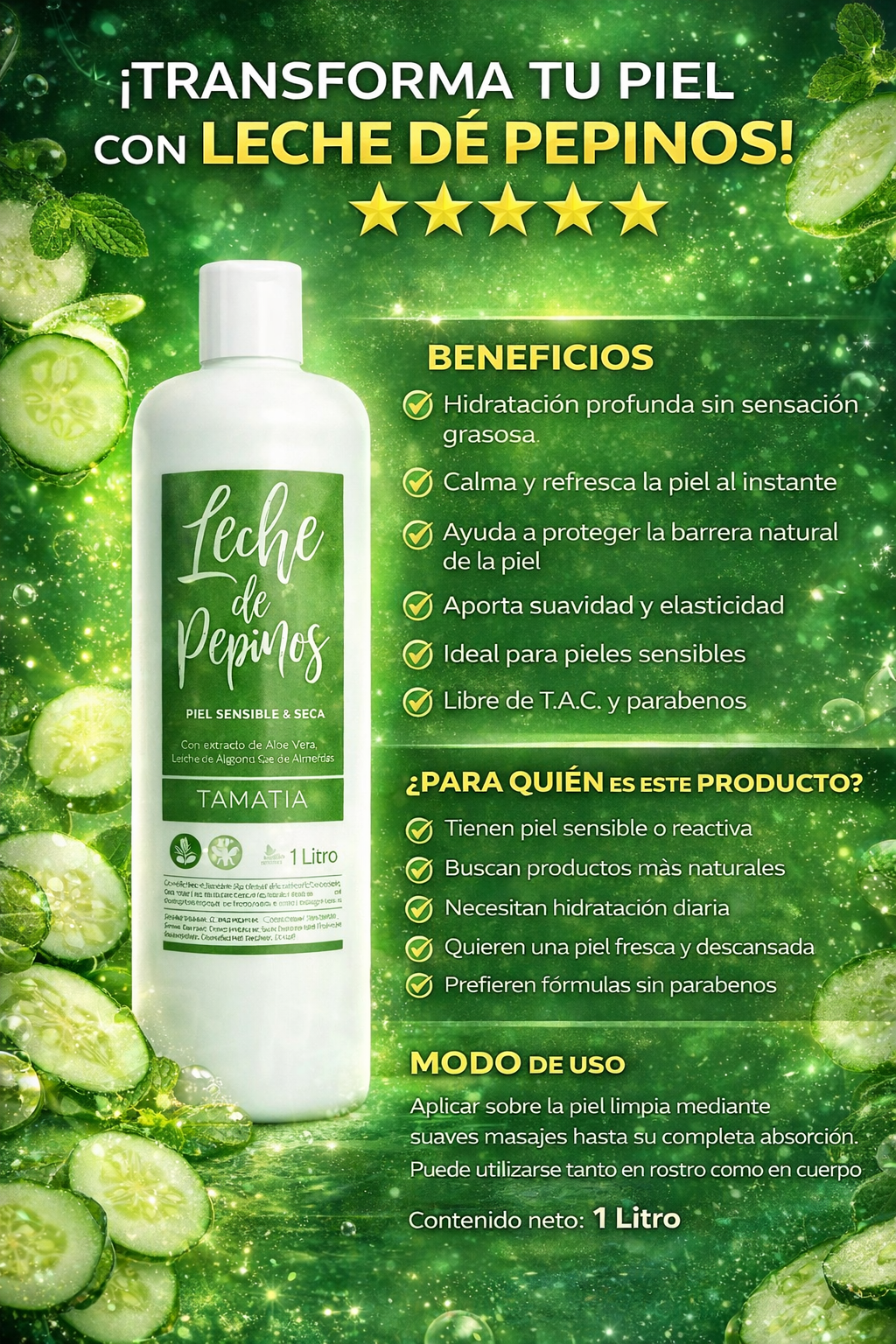 Leche de Pepinos Profesional 1L – Hidratación y Cuidado para Pieles Sensibles